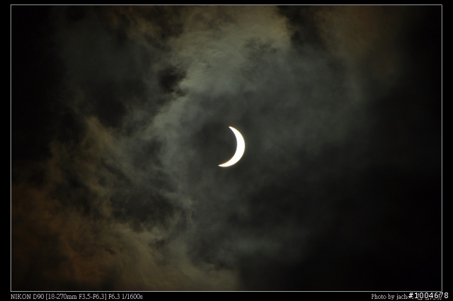 幸好有雲幫忙減光, 但看起來很像月亮~