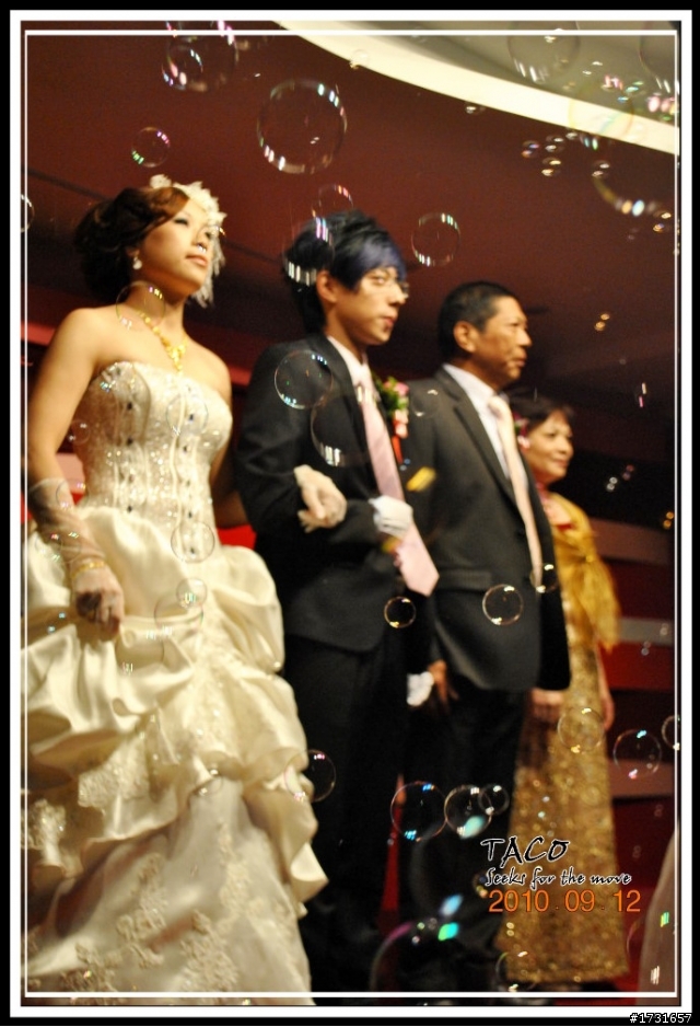 各位大哥大姊 小弟我一直都忘記自我介紹我叫做 章魚 也有人叫我TOCO哥 請多多指教我貼幾張上禮拜我表哥結婚 我側拍的照片沒有神燈 真的差很多 有的時候常常內閃不夠用沒辦法我只好使用後製處理方式因為當天另有人拍 所以我只負責側拍而已!順便練習一下各個模式我當天大部分都是使用人像模式在拍 我發現我的最大敗筆 我朋友居然把日期加上去顯示我都沒發現到傷到各位眼睛抱歉嚕!! 請多多指教喔!!(我發現我還是比較擅拍靜態的東西)佈置用的娃娃 我橋過角度後拍攝 18-55/光圈先決(無後製)餐廳佈置的會場 18-55/光圈先決(無後製)姑姑和姑丈 18-55/人像模式(後製調整)表哥和表嫂 18-55/人像模式(後製調整)抽到捧花的小妹妹 18-55/光圈先決(後製調整)大酒杯乾杯 18-55/人像模式(無後製)表哥和士官長 18-55人像模式(無後製)這張是我朋友和我借去拍的 新人我也認識不過當天我指出器材(因為她的550D賣人了.所以借用我的)不是我要說的 她用光圈先決模式下去拍 結果50張內 我只有挑出這一張我看的很順眼而已我也就順便給她 後製一下