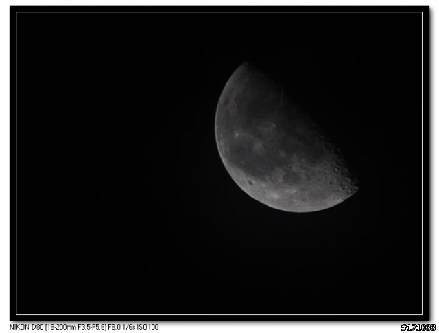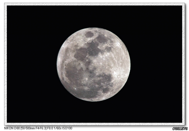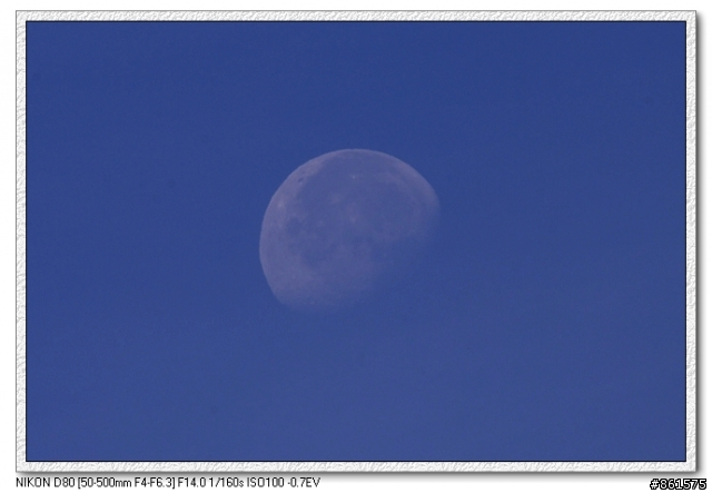 我也來貼一張給大家參考看看我用Olympus E300 + 70-3001/125 F5.6有裁圖我的心得是拍月亮快門不能太慢因為月亮很亮而且月亮移動得比想像中快...還有適當的裁切會讓主體較突顯(巨砲用家則免...)