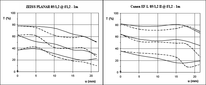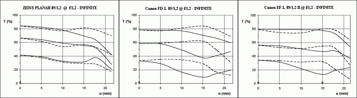 打鐵匠 wrote:那一篇的小黑三望遠...(恕刪) 那一篇很顯然是對完焦,就直接調整光圈就按下快門,這樣測試假設對於一個球面像差比較高,就會有縮光圈過程焦點偏移(FOCUS SHIFT)的問題。Zeiss Planar T* 85mm f/1.4 ZF (FX)可以看到隨著縮光圈,焦點往後移。F1.4F2.0F2.8再來就是鏡頭本身並不是固定MTF,他是會隨著距離變化。一般鏡頭無限遠通常是最佳像差修正,近距離會有較高球差,但是每顆鏡頭不同設計差異而無法用一個距離測離來表達其他距離也是同樣狀況。例如ZEISS 85/1.2在無限遠是比較好,但是可以看到近距離1米,其中低頻下降很快,在近距離表現就不如CANON 85/1.2。實際測試照片就比較是這樣巅峰对决,佳能EF 85/1.2L VS Planar85/F1.4 再 VS Planar85/1.2 MallocFeng.gif">另外兩極化設計就是微距鏡,他會把最佳像差修正定在近距離某位置,老鏡通常是設定1:10距離,像是有兩米內的怪物MP60。無限遠時邊緣掉落很快,但是近距離時,整體趨向更平坦,甚至高出現像。