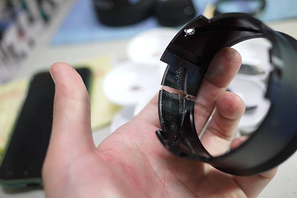 這是我修理過唯一一顆用電鋸拆開的鏡頭,而且前一晚我才剛出院(身體不適)