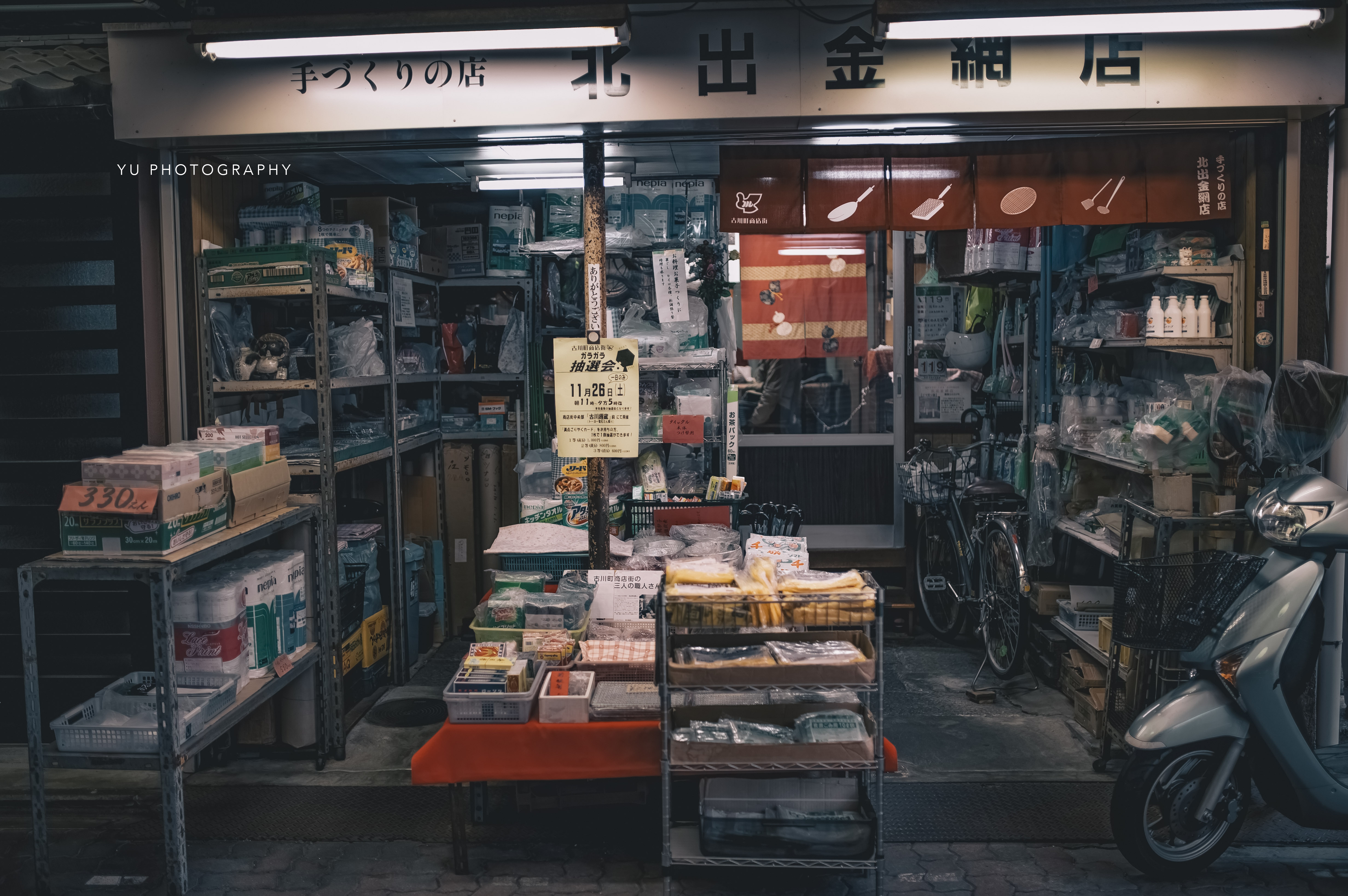 商店街內的小店。燈光昏暗但擺設非常地整齊。