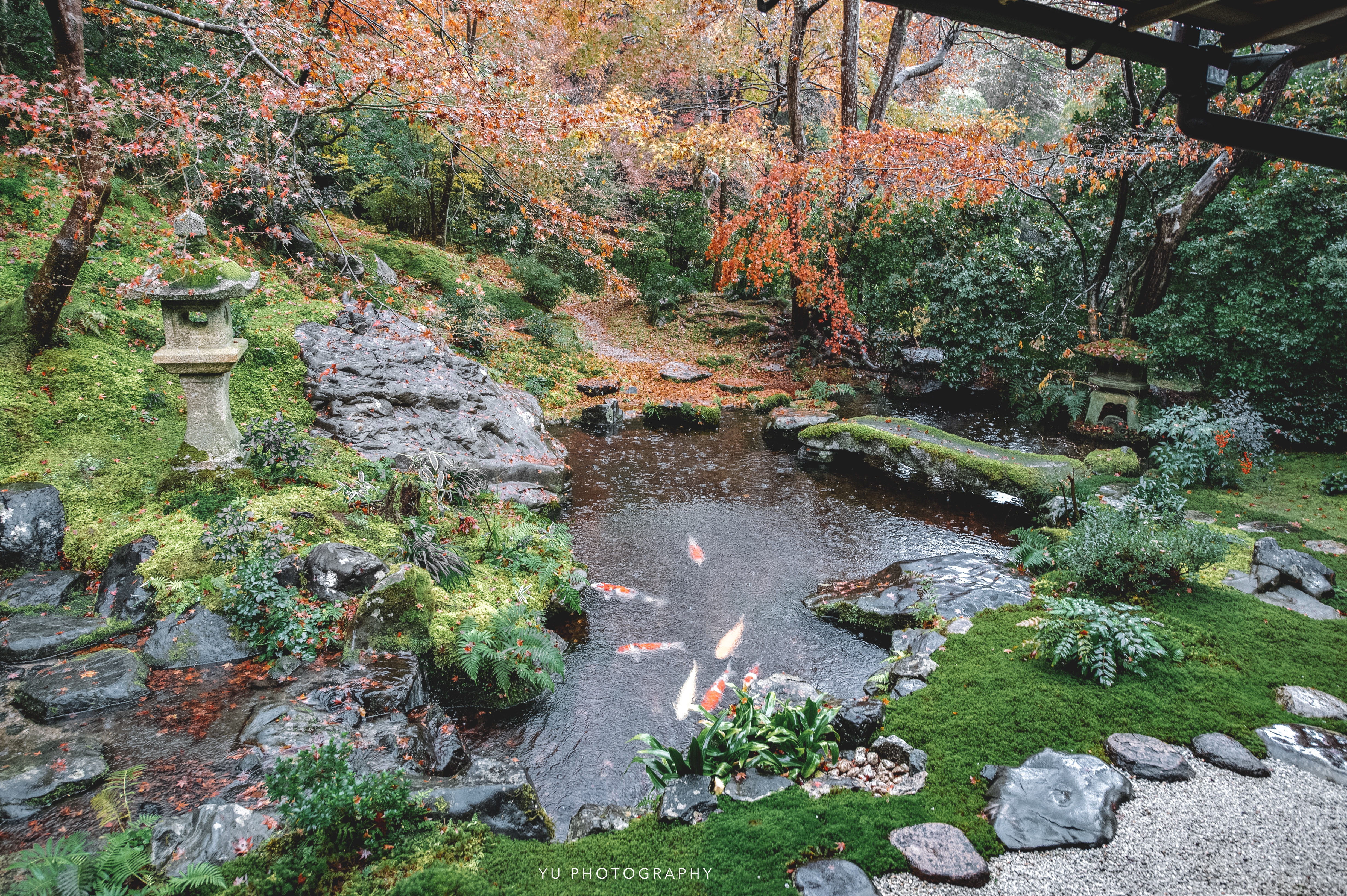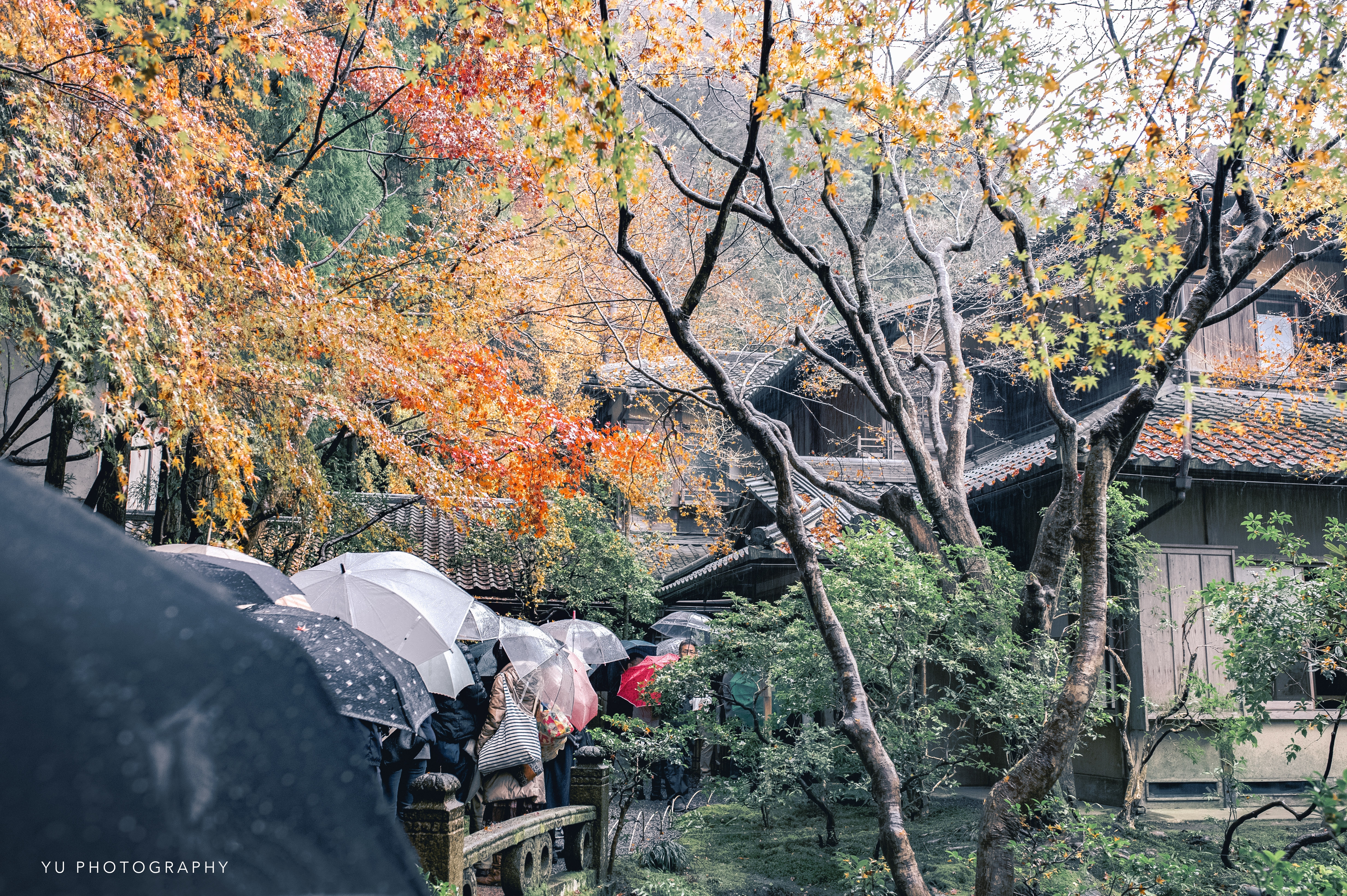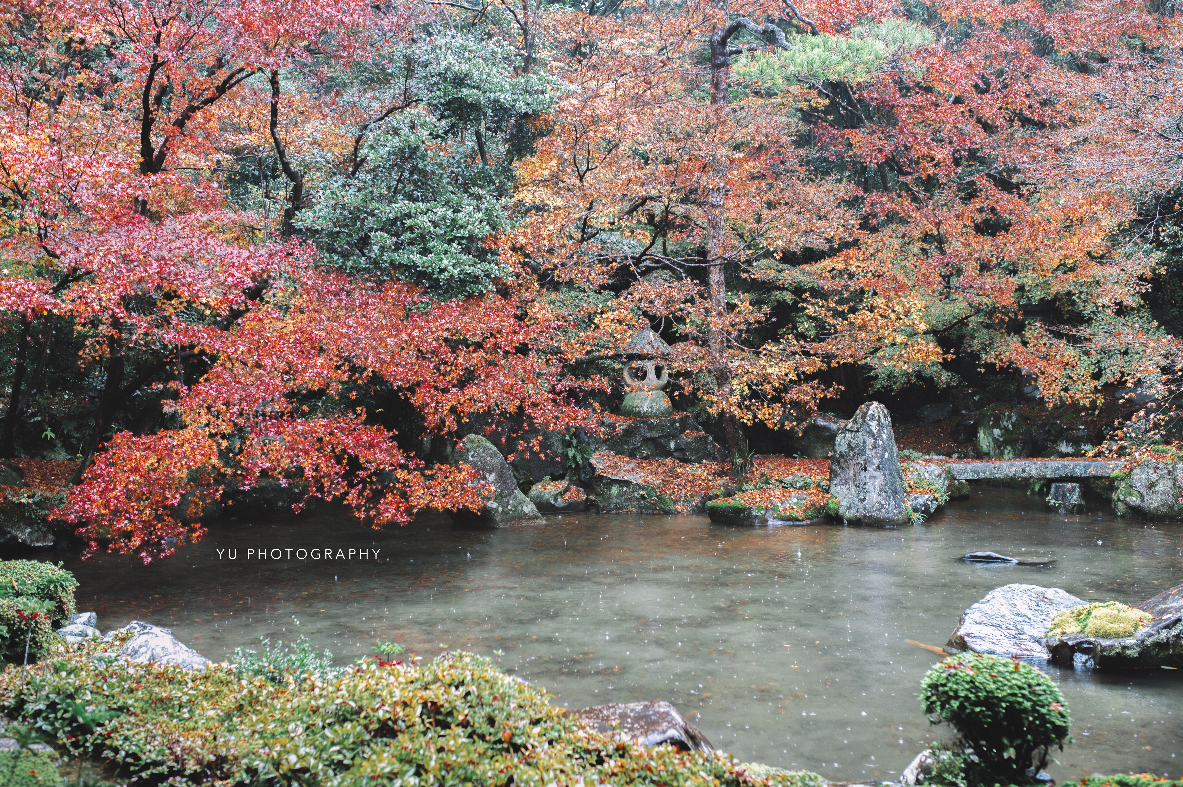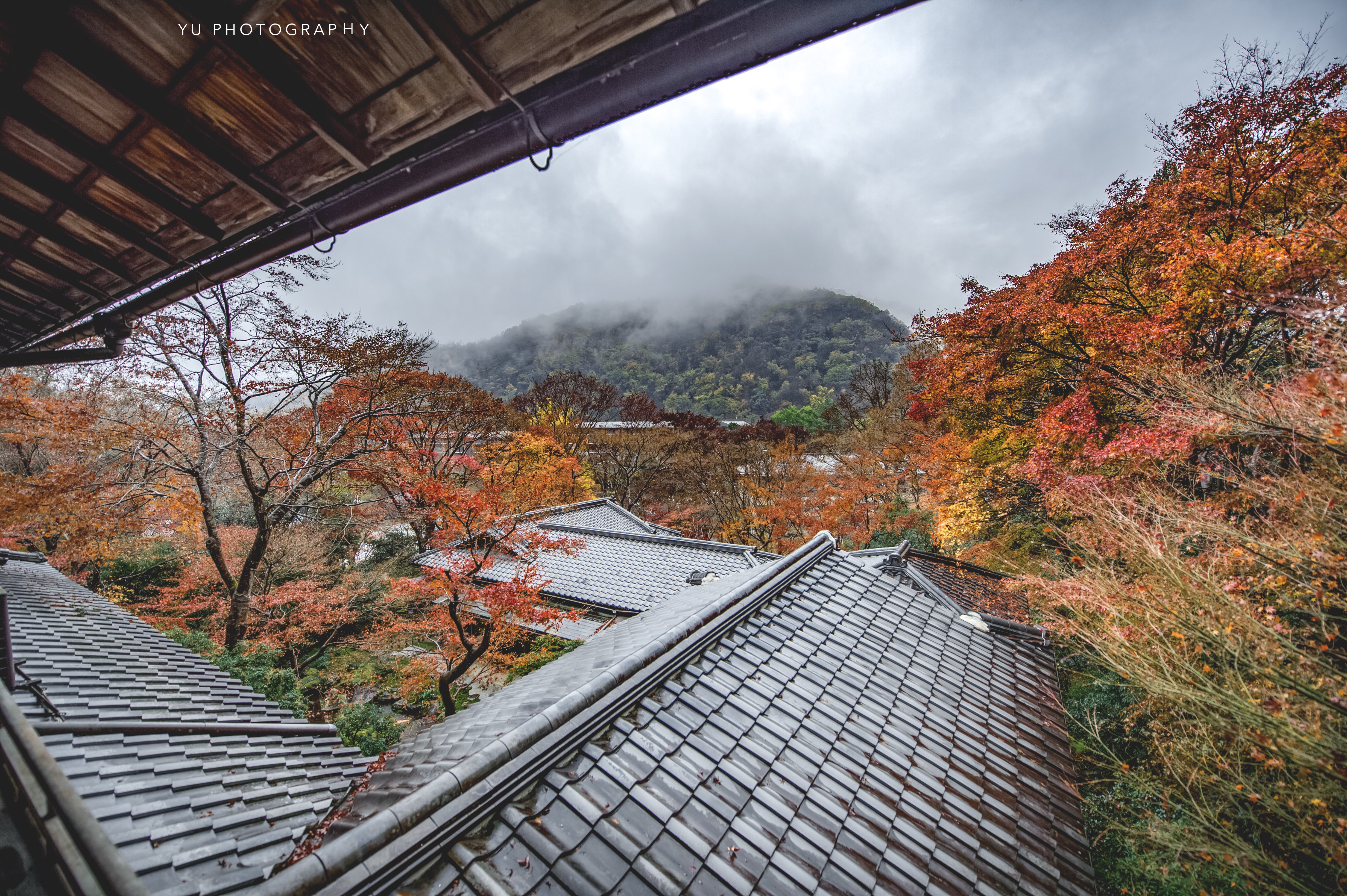 才剛抵達永觀堂,天空還是晴朗的,竟下起雨來。