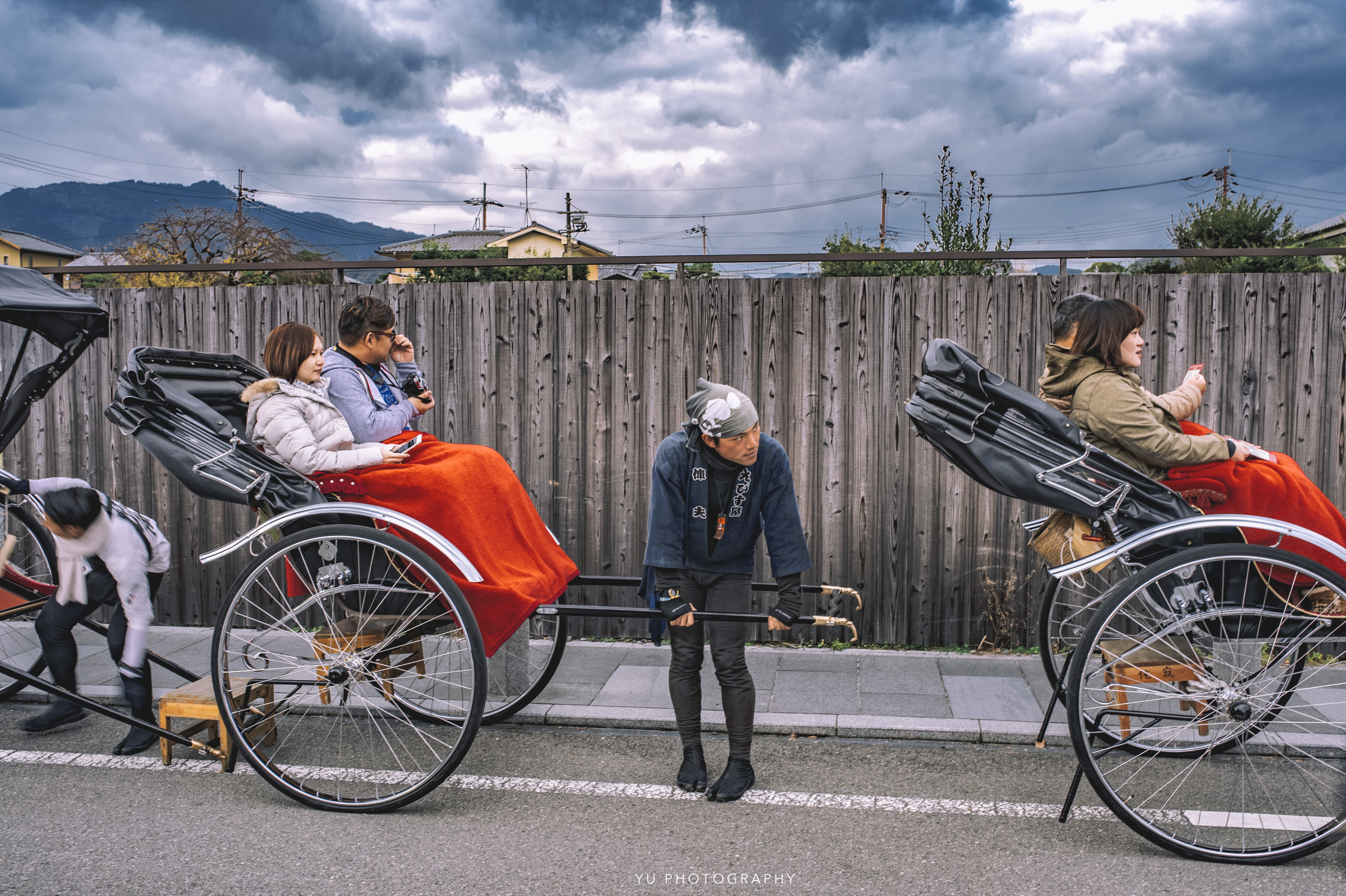 一旁的人力車蓄勢待發。