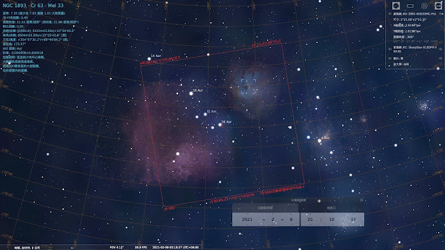 - 標註名稱後知道 M38 疏散星團及 NGC 1893 也入鏡了。