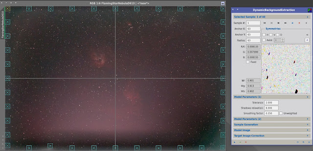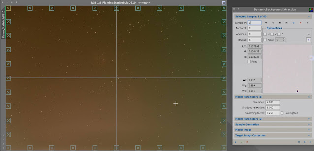 - DynamicBackgroundExtraction 後發現中央下方光害很嚴重,要事先裁掉再來 DBE 才能得到較佳的結果: