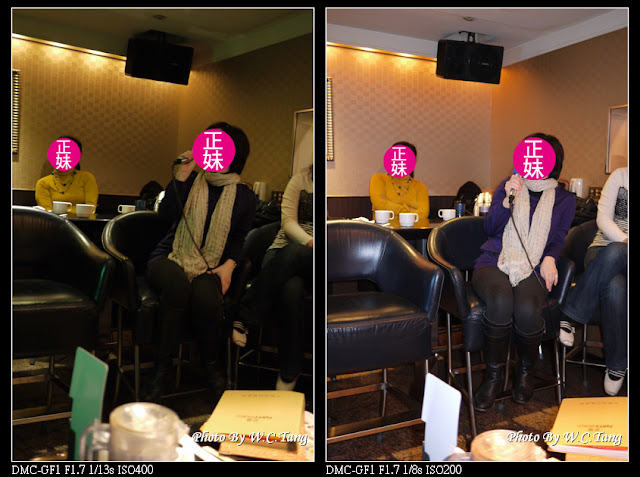 趁最近大家去KTV的時候練習幾張,大家都知道KTV有多昏暗了吧,左右各是使用前後的差別,設定為P模式,閃燈設定為智能抗紅眼(這樣解釋應該可以吧@@")