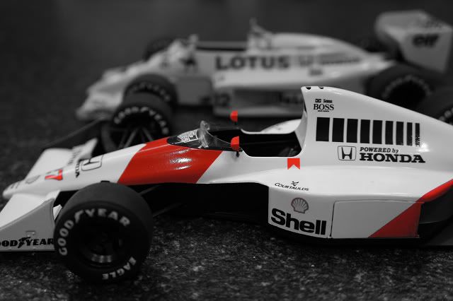 簡單分享幾張抽色的模型照:洗拿的坐駕McLaren Honda MP4/5B同樣是洗拿的坐駕 Lotus Honda 99TDMF 對焦很好用想想以前念書時搞攝影社團...還蠻累的,現在科技讓拍照變成一件好玩的事