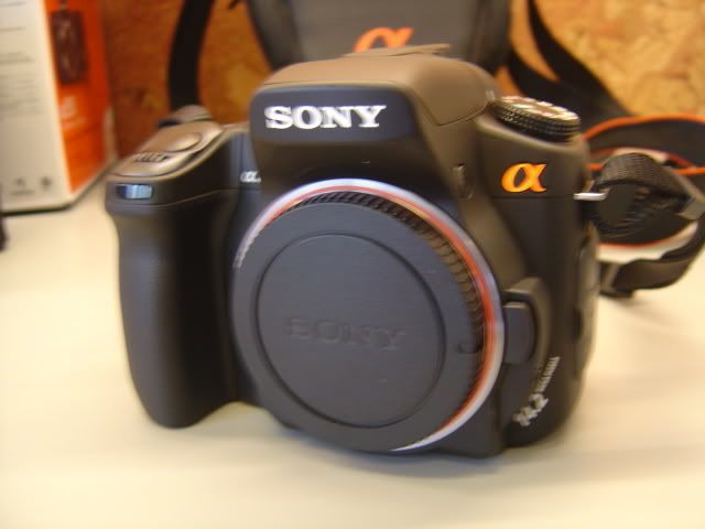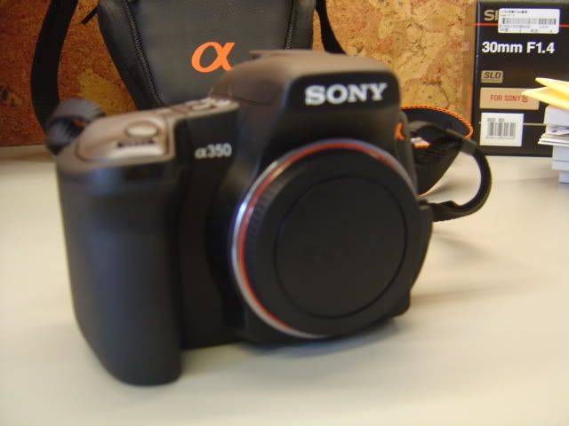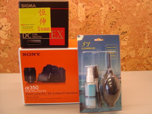 我原本打算買C家的40D或5D跑了台中三間店家,只有一間有貨但沒有我要的鏡頭17-55,因為在三天就要吃國遊玩,情急之下便買了a350來玩玩,等回國後再來買C家的東西,這台就給我妹妹用吧不過我當場也有玩40D,一開始我很確定要買40D,後來有位先生近來帶了A350,我詢問之後A350在加兩顆鏡頭,竟然只要4萬出頭,40D配上17-55少說也要6萬出頭,於是我就先決定買這個來先頂著我只有買這些東西而已這個包包是sony送的只能裝一機一鏡這是另外買的原廠kit照的很爛請多原諒,C家你等著我等我把構圖 把光圈快門測光白平衡這些全部搞懂,我就來找你了