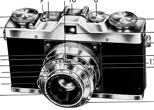 Leidolf Lordox .Triplet 5cm F3.8鏡頭.資料說明.Lordox 24x36mmLeidolf 35mm 觀景窗相機.在一些市場也稱為Lordette或 Optina 24x36(加拿大)。 35mm Lordox於 1952 年製造,頂板上標有Lordox 24×36,以區別於早期在 127 膠片上進行 4×4cm 曝光的同名相機。它在 Pronto 快門中配備了 Triplet f/3.8 5cm 鏡頭,之後在 Prontor-S 快門中配備了 Triplon f/2.8 5cm,之後在 Prontor-SVS 快門中配備了 Lordon f/2.8 5cm。1957 年,它經過重新設計,身形狀類似於Lordomat - 參見Lordox (1957)。看著Lordox或Leidox,您可能會對背部如何打開感到困惑。沒有明顯的鎖、按鈕或鑰匙,並且倒帶旋鈕無法抬起。必須將兩個背帶凸耳向前旋轉 90º,然後才能取下整個背部。網圖分享.