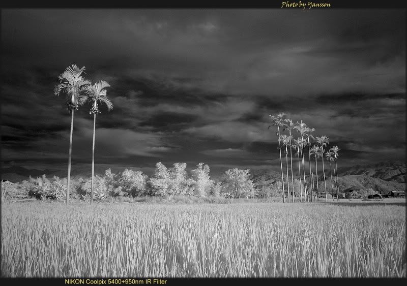 D80 + B+W 093純紅外線濾鏡拍的,不過還是感覺樓主的照片比較有Fu說.因為用DSLR來拍真的不太方便!以在下的組合來講,鏡頭都要用最大光圈,ISO也都調到200~400,也都是泛焦的拍攝手法,曝光時間最少都在15秒以上才能拍下這些照片.