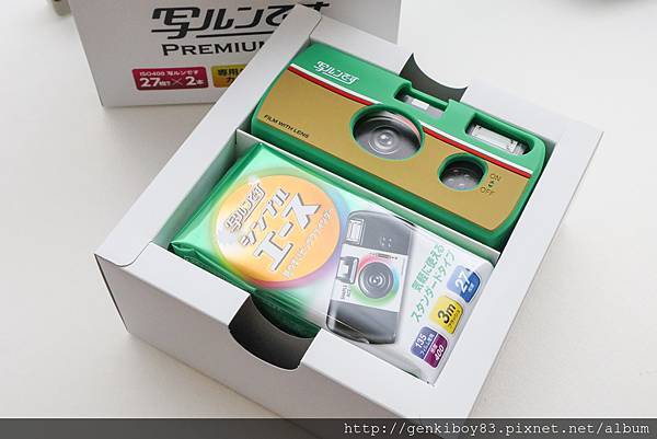 內容物其實很簡單,主要是兩台27張的ISO 400的即可拍、一個仿造第一代外殼的矽膠套與一個掛勾