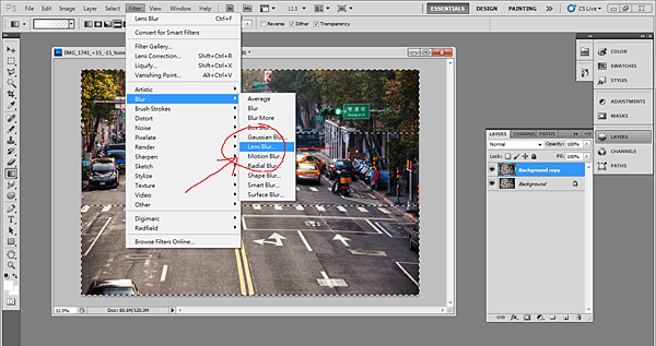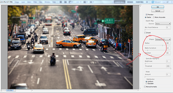 (4-1) 選擇 filter 下面的 Lens Blur (鏡頭模糊),其實也不一定要用鏡頭模糊,