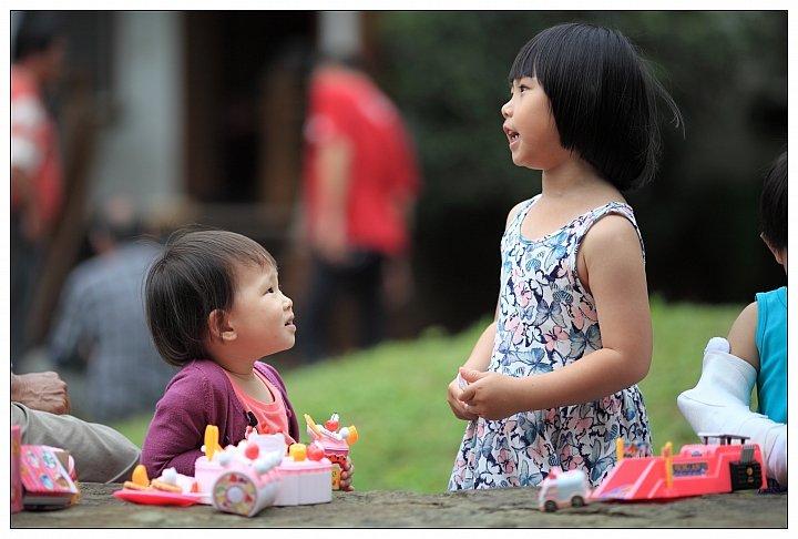 妹妹羨慕的眼神, 傾聽姐姐說話.
