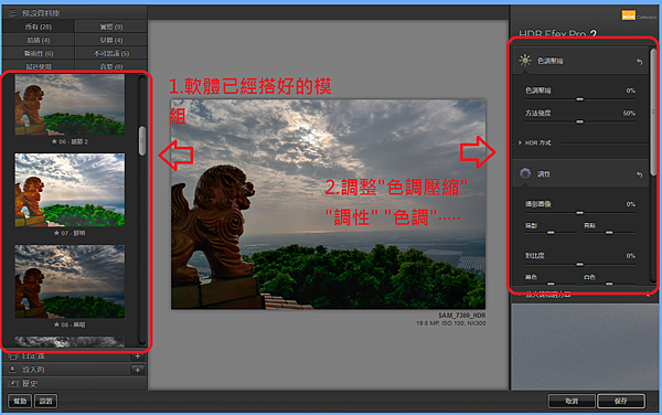 step8.接下來就是自己調參數拉,雄弟就不贅述了,若想要更深入了解HDR雄弟推薦一本書"第一次玩HDR就上手-小熊子 著"(雄弟沒置入性行銷也沒收作者錢,只是好書不推嗎)