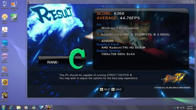 再加測一次解析度1366x768,特效為預設值,8x AA,方便和SB的AMD Radeon™ 6470M (512MB VRAM)做比較。