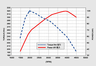 扭力圖應該不是布丁,但是說真的也夠高了。請見台灣福特六和官方網站的2.0 TDCi引擎性能圖表:扭力從2000rpm到最高點,而實用的2000~3000rpm扭力都有近30kgm。即便到了4000rpm也還有約25kgm~你說,高扭力在中低轉速區間是不是很實用(搖晃...)