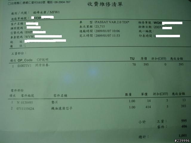 如果有方法,自備機油(一瓶300多一些,用4瓶MOBIL ESP 5W-30),其實保養費也不貴