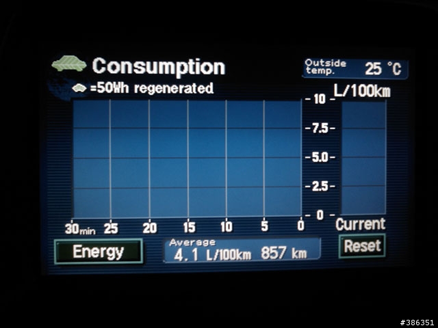 以 Insight 使用的燃料 無鉛レギュラーガソリン 來看日本目前油價平均為 ¥114.4 /L 資料來源換算下來, ¥2100, 大概加 18.35 L, 一共行駛 350 km所以油耗約為 19 km/L, 也許是新車吧, 似乎沒想像中比目前的二代 Prius 更省油補上我的 Prius 油耗, 這是今天拍的, 這桶油目前行駛 857 km油耗顯示為 4.1 L/100km ( 我以 4.2 L/100km 計算的話, 大約是 23.8 km/L )