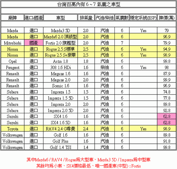 一樣的價錢,可以買到6SRS的RAV4 G尊貴版或ROGUE2.5了...(恕刪)