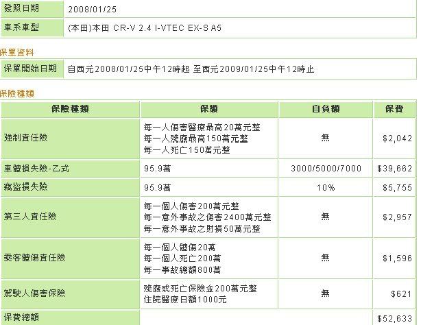 上面的價格我是去新安東京海上網站查的!因為你只有價格所以我猜大概和這張的是一樣的