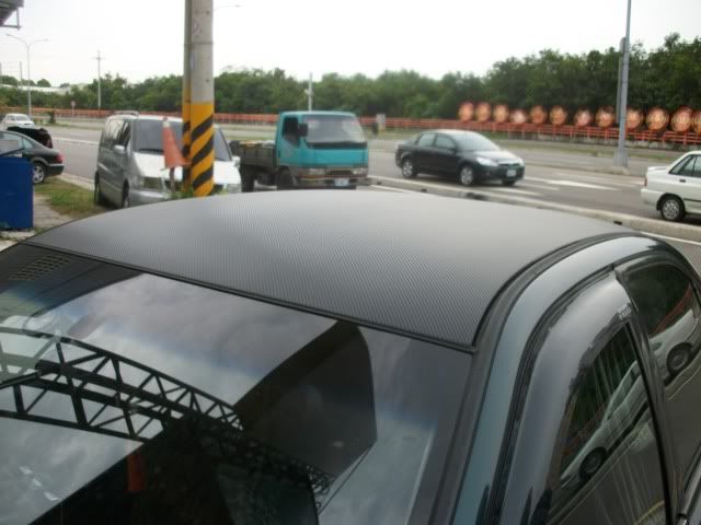 我在中秋節那天,到高雄市一家貼膜店貼卡夢膜了,果然是眼不見為淨,至少不用在車頂貼著4塊透明補丁,貼的時候我不在場,不過老闆應該是有把泡泡先磨掉,只是不曉得磨到什麼程度,希望可以撐久一點,不過以後我只能用手工洗車了,因為老闆說不建議去加油站洗,貼起來還滿有光澤的,這次一共花了4000大洋。看圖好了,before:after: