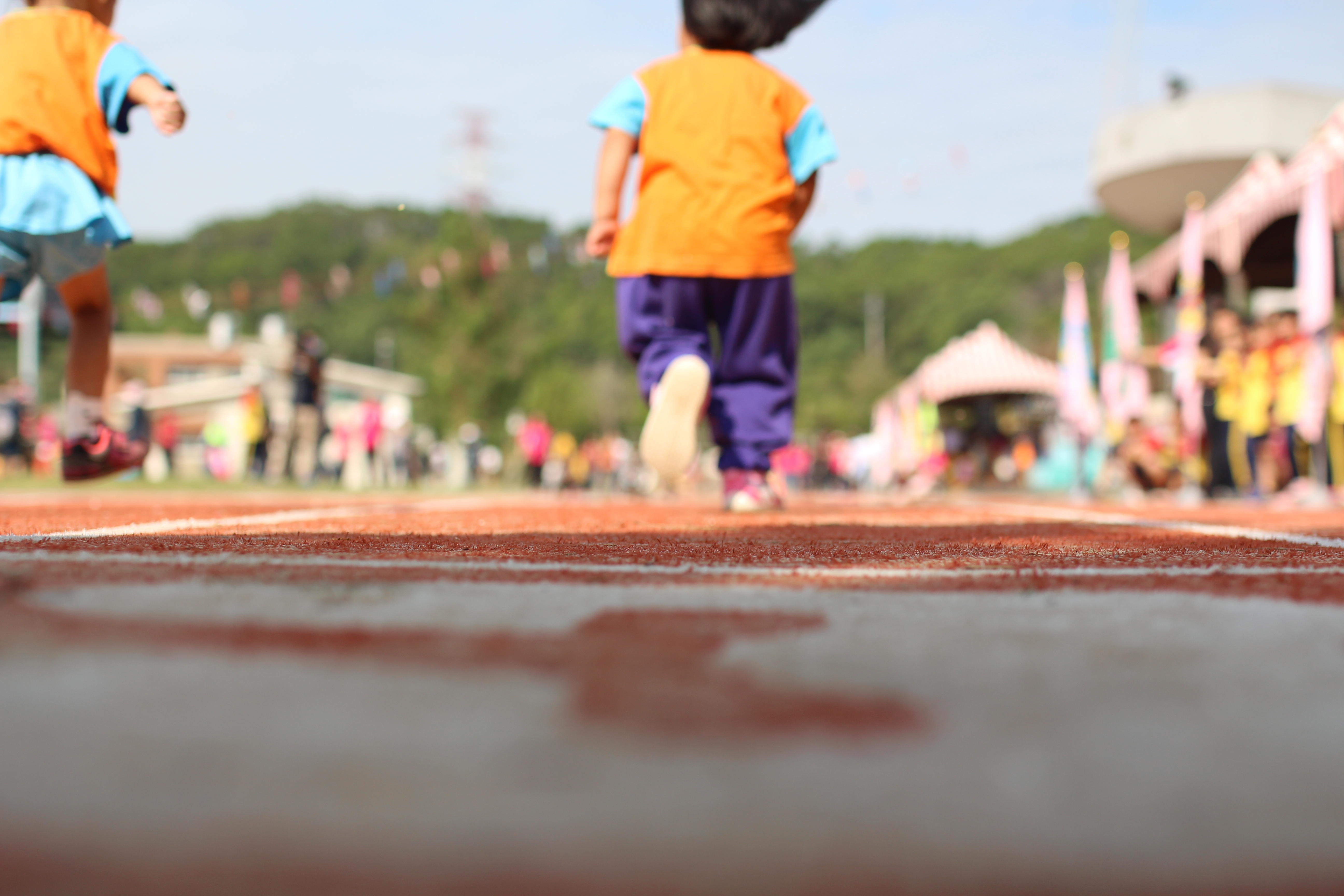 課業、才藝、語言...等,就像照片裡的小朋友一樣已經從起點出發踏上人生這條跑道了。