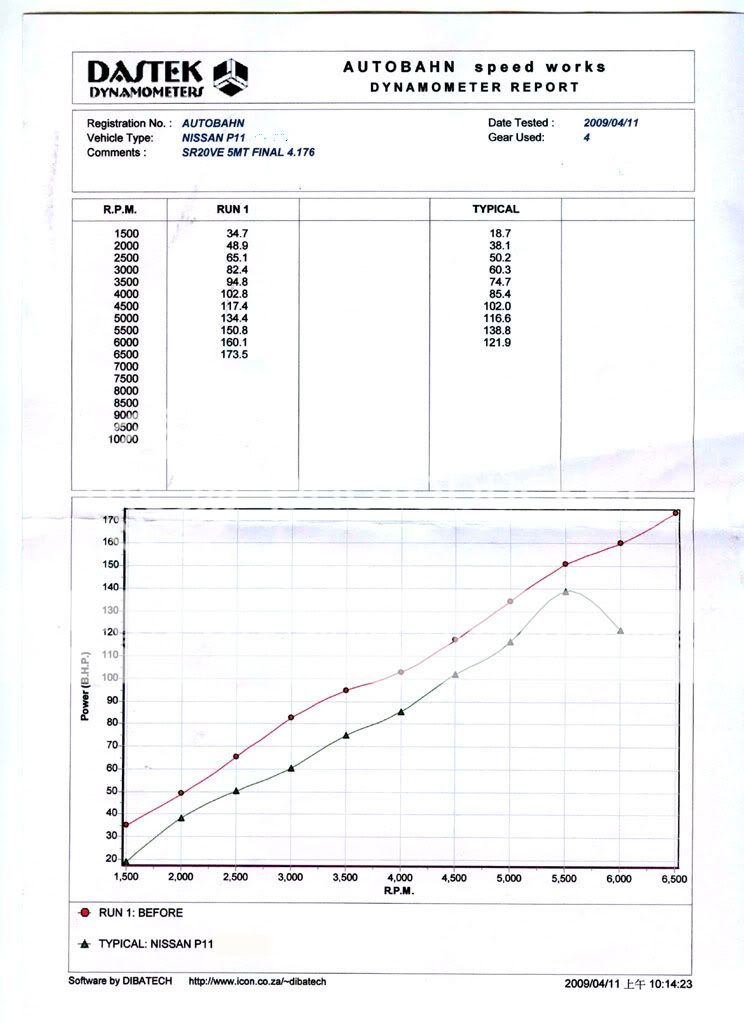 買P11沒引擎號碼,買車之後就一直想要來個換心計畫但不時又有不如直接換一台年份更新一點的車的想法但這四年內對這台P11所花的心血又有點捨不得換車百萬以內的新車除了內裝漂亮一點外引擎動力能和SR20VE相較的我看也屈指可數所以就決定來個換心且退化手排的計畫原廠引擎15萬公里的SR20DE上置引擎,鏈條已經有點聲音了換上年份較新,且具可變凸輪角度的SR20VE VVL高轉引擎拉馬力,發現SR20VE在6500轉時的極限還沒有發揮,還在不段上升中,由斜率判斷7000rpm應該有180p的實力吧扭力值也能夠較原廠引擎來的大且在一個範圍內,低速扭力提升不少,甚至3檔起歩還不會熄火也希望這樣的換心計畫,能再讓我多開這台車3~5年