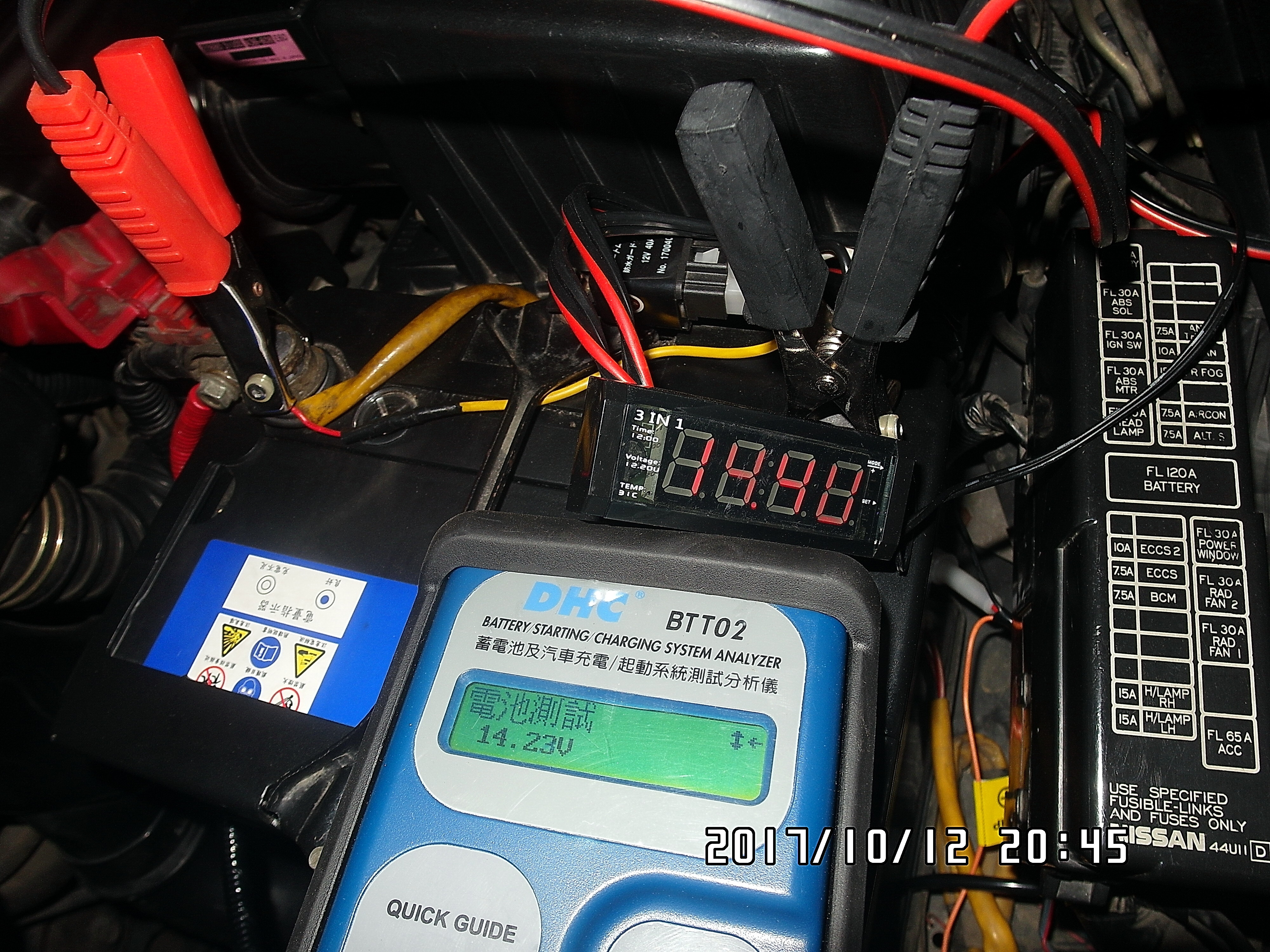 那我也來去買一個電壓表來看看敬濤這回啟用BTT02直接夾於電池+.-端子來測電壓與點菸器做比對如下