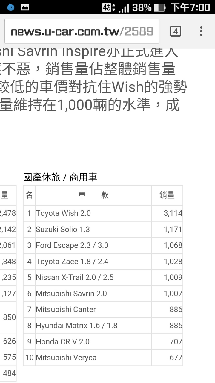 鐵之石心 wrote:這是12年前wish 前兩個月的銷售額,大家參考看看,就知道sienta 賣的好不好了,不用說太多,事實就是這樣,不把安全加回去會更慘...(恕刪) 就算差到一個月500台,也不能說慘.有多少車一個月賣不到500台?Luxgen 6種車型也才一種月銷有500台, 全部加起來才一千出頭. 還自主開發的,不就準備收起來了?這車一個月就算"只能"賣500台真的不算差了.
