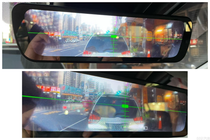 我仔細摸索了下,發現前後顯示畫面角度是可以調整的,但是夜間畫質表現實在沒有很理想,所以我還是習慣用傳統後視鏡。