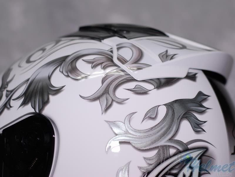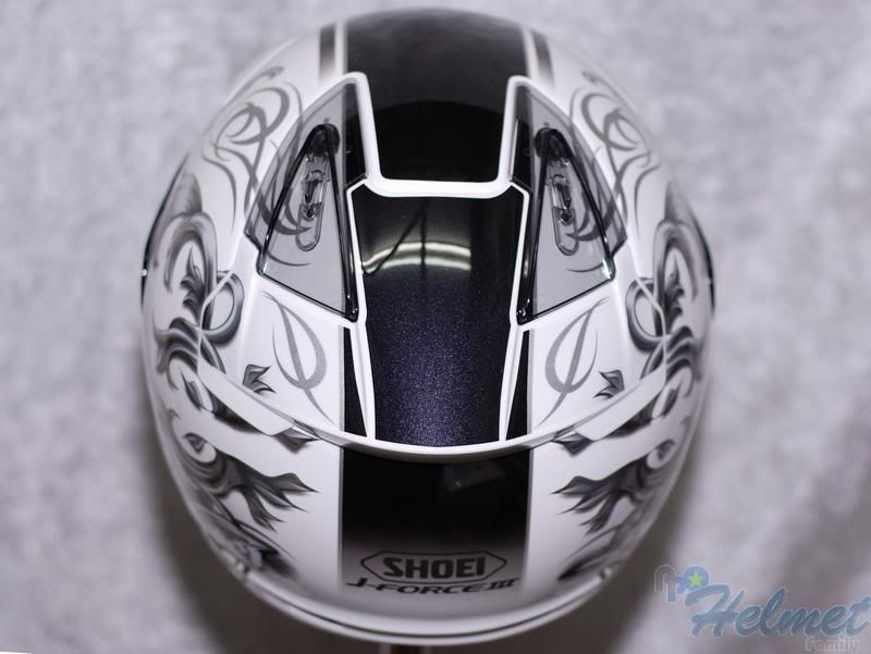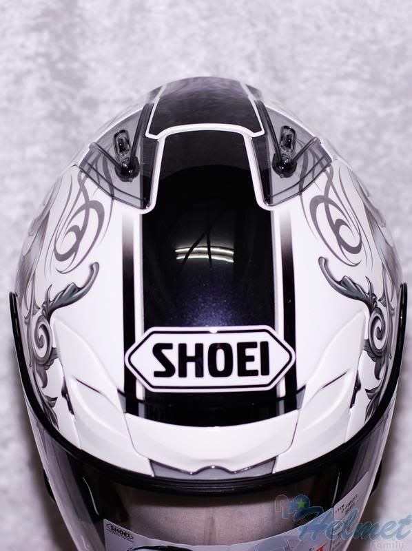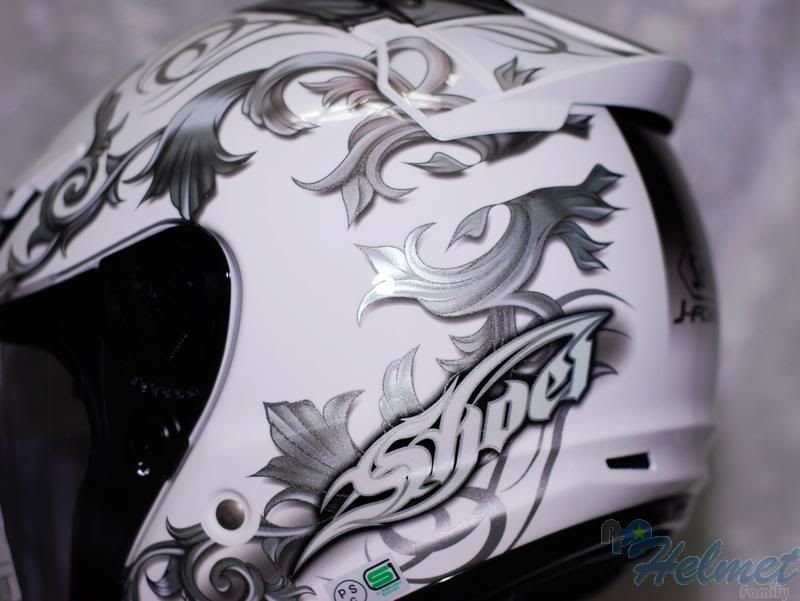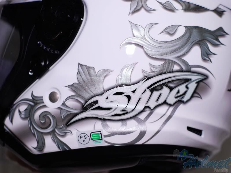 周一最後一天應用電腦展把D50升級成D80囉~~昨天就拍了,結果像機沒調好,大失敗,所以本日重拍...結果光圈開大了些,導致景深不夠,請見諒囉重頭戲來啦,SHOEI當家變色科技,請注意下面兩張同角度的照片(一張打閃光,一張沒打光),整頂銀色花紋皆有此效果----------------------2008.08.09新增黑藍色中間那道珍珠白很屌,就真的像珍珠的殼的內面一樣,可以反射出紫、藍、綠偏光色金油厚實,連我的除濕機都上像了