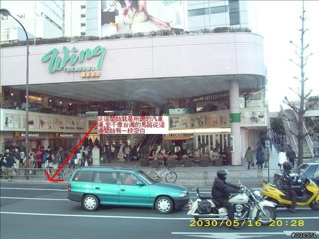 這條馬路從欄桿開始就是汽車道.....(如下所示)