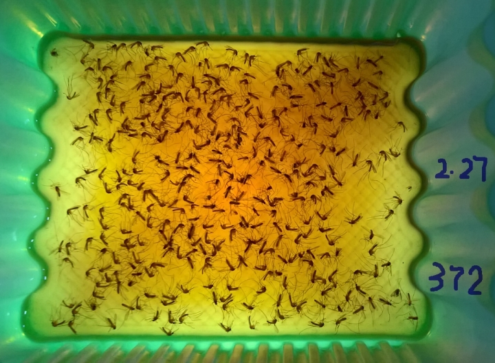 2/25~2/27 新增164隻 2/17~2/27 總量達372隻這一盒後來居上 2/25~2/27 新增259隻 2/17~2/27 總量達385隻這個情景再發展下去...我沒辦法計算了 整個油已經快被蚊子填滿變得很濃稠