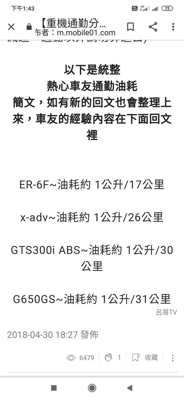jinghong wang wrote:確定要賣掉了 垃圾車(恕刪) 重機騎市區更耗油,你長途油耗沒問題啊,比我many,j bubu好太多,加到跳停本來就有誤差,不然油耗可能更好,重機的怠速,冷車供油濃,走走停停,短程,比長途還要耗油許多,養一台重機快和養一台汽車費心,如果我騎重機單趟市區1.5km,那油耗可能連20km/l都不到,我猜可能只有15km/l吧Sweet改個16克珠就很好騎了又能更省油