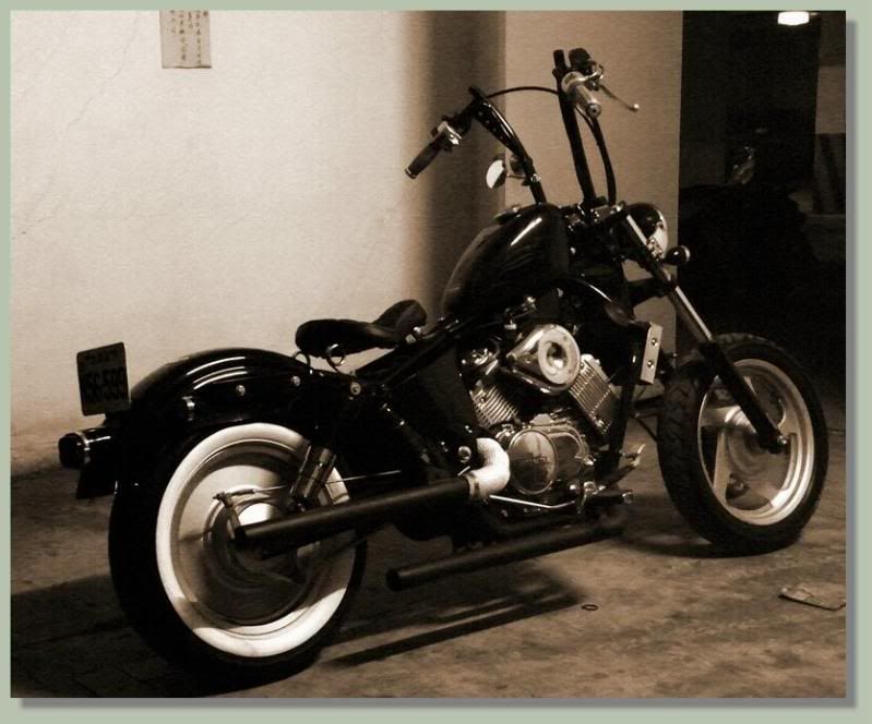 好久一段時間沒騎車了..也好久一段時間沒好好欣賞我的她了..今天閑來無事,幫她好好的整理了一番..先就定位擦擦這個還算屌的把手兩顆大大心臟和濾網蓋小小黑黑的復古小頭燈非常難難保養的白邊胎最愛此個角度的蜜桃臀烏漆媽黑的雙嘶吼氣管老學校專用單座彈簧椅搞了半天,拍個相片留影一下,準備來去墾丁享受夏天了..