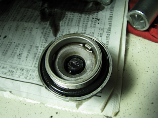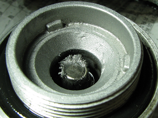 敝人車車(sv max125, 2002年鼓剎版), 在 2007年10月時, 將y牌『原廠油底殼泄油螺絲』改換為相同尺寸規格的『油底殼泄油磁石螺絲』。 換上後, 雖有數次泄放機油時一併拆/裝油底殼泄油磁石螺絲, 但從未徹底仔細檢視.. 反正沒有跑出一條蚯蚓出來就OK啦....