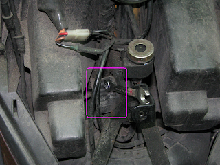 已拆移大燈座組, 大燈燈泡接點 (2點)已可見到.