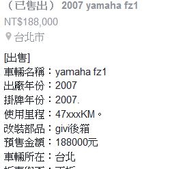 最近在網路重機拍賣社團上看到一台08年的FZ6N S2特仕版,