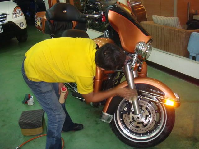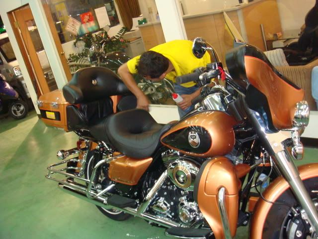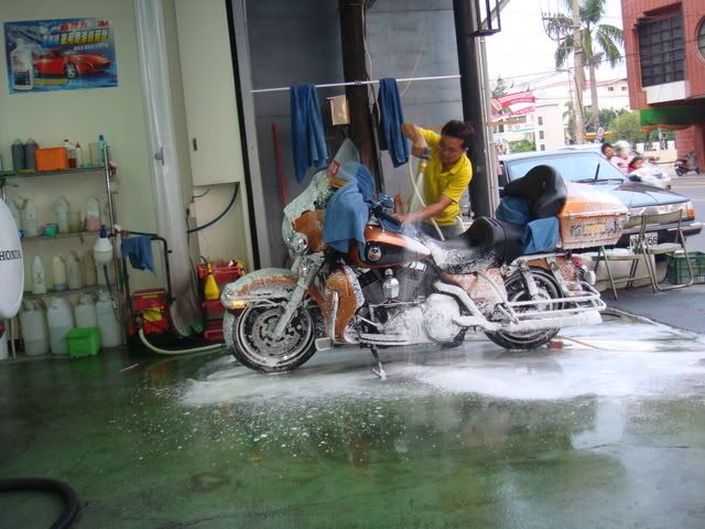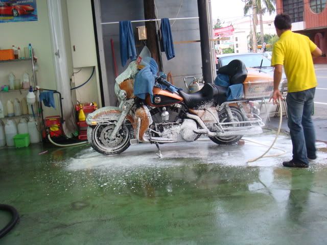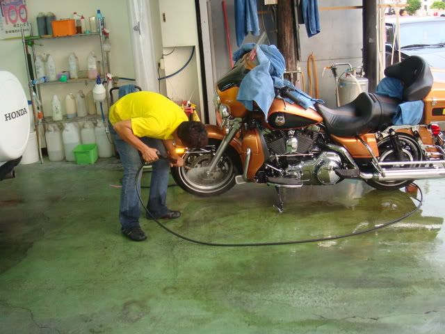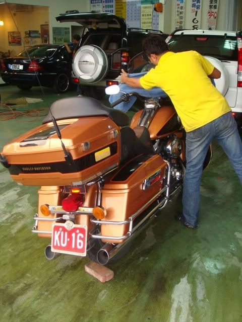 4-26 ,交車掛牌後第一次委託他人洗車打腊。等車子冷卻 + 洗車時間 = 三小時,不過這個等待是蠻值得的,完工後閃閃發亮晶瑩剔透的車體,真的讓我滿意到極點。到場先把不宜與水柱直接接觸的重要部位包覆起來。拆掉側行李箱沖刷開始洗泡泡浴洗完澡澡 ~~ 要先滴水後才能上腊。細工開始 ~ 電鍍的部位都是用手上腊。完工後美麗的天使,邊箱還沒裝上騎腳踏車經過的路人甲就進來要求合照一張。洗得漂漂亮亮,明天 4-27 參加茂林萬山原住民文化之旅。