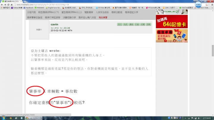 MTB LIFE wrote:國道已經有點亂,重機上去會更亂。況且重機要騎哪線才安全?內線快車跑,外線大車跑,路肩碎石沙礫多,中線?希望切進來中線後別自摔。(況且有些國道只有2線)另外開車人要怎樣應對前方重機摔車,我被教育國道上前方有人後方有車,當剎不住時就是撞過去才能減少危險。所以重機若上國道,除了沒辦法情況下撞人,還得撞躺在地上的重機.... 你以上所講的有哪一點只會發生在國道, 而不會在一般道路上發生?又有哪一點只會發生在重機, 而不會發生在一般小機車上頭?如果你的理論成立, 那麼全國所有道路都該全面禁止任何機車上路囉?高速公路和一般道路最大的不同點是:高速公路是全國最安全的路 (越安全的路, 速限就會越高, 很難瞭解嗎?)為什麼要禁止重機行駛在最安全的路?只准重機在較危險的路上行駛? 真是為了重機騎士好?