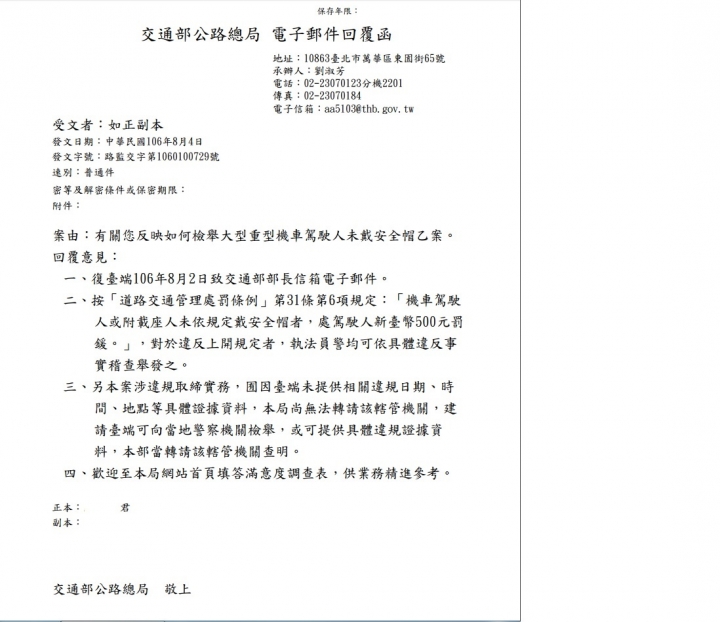 警察能說依"公文路監交字第1060100729號公文"來取締民眾而不是依"道路交通管理處罰條例"嗎?