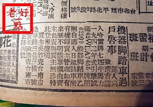 以上都是我收藏的舊報紙,民國41年報紙刊登的啟示,和車友大家分享,六十年前刊登的啟示可別真的殺去