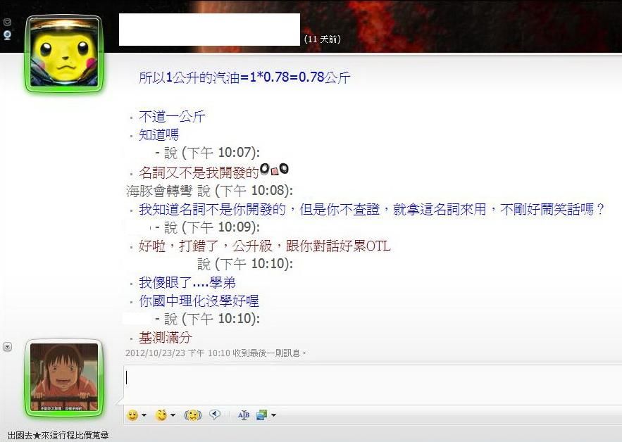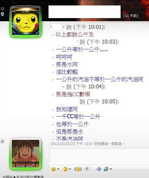 鯊魚辣椒 wrote:我逛01也蠻長的,但是我從來沒有在零壹上聽過什麼公斤級的大車.....不曉得其他先進有沒有聽過或看過這個詞當在聽到的時候請跟他說,油比水輕,一千CC的汽油不等於一公斤,請正視公升而不是公斤,謝謝。 一般不是都說是 "排氣量" 嗎?跟水 汽油有關係!?