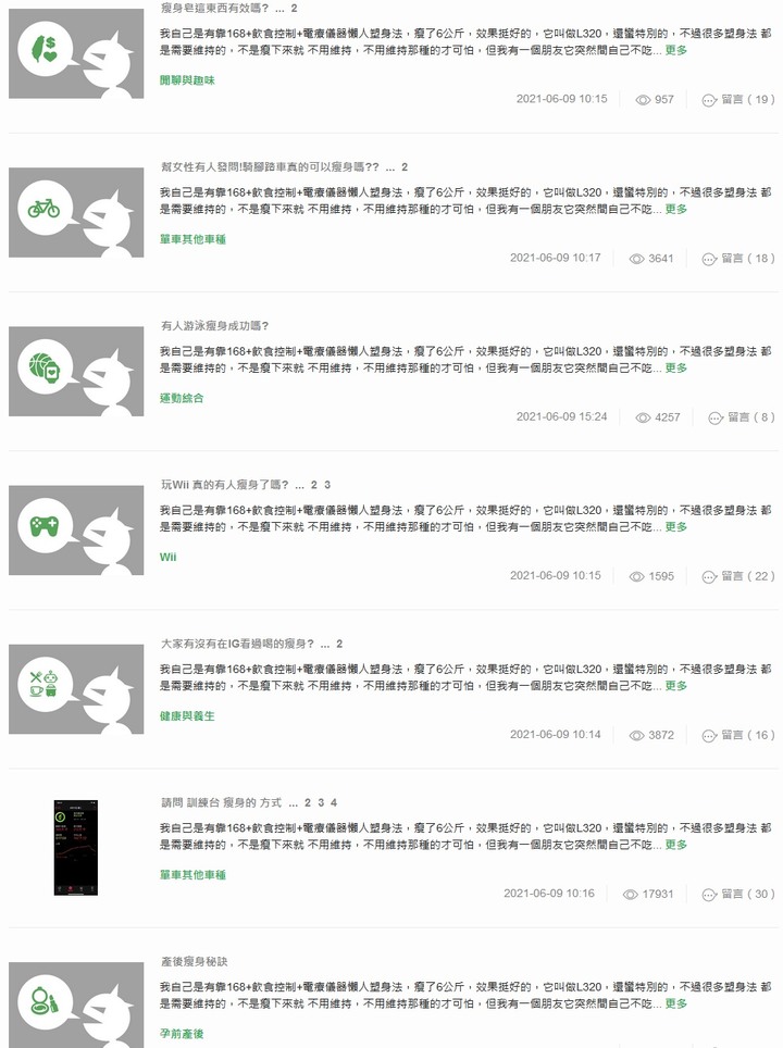 我自己是有靠168+飲食控制+電療儀器懶人塑身法,瘦了6公斤,效果挺好的,它叫做L320,還蠻特別的,不過很多塑身法 都是需要維持的,不是瘦下來就 不用維持,不用維持那種的才可怕,但我有一個朋友它突然間自己不吃瘦很快,結果皮膚跟肉 分超開,借他用運動功能後 他的肌肉線條變好看許多