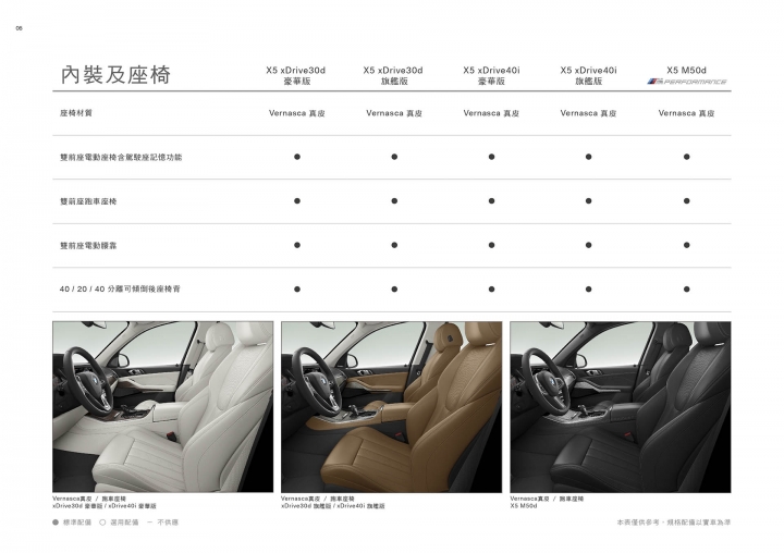 業務傳來的...請參考接單價X5040i/30d豪華版339萬旗艦版369萬, 12月正式發表車價會漲9萬...現在新X5鑰匙放身上,靠近時車門自動解鎖,人離開車子時車門會自動上鎖,標準配備半自動駕駛,開高速公路押到線,方向盤會自動修正,