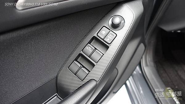 車門的控制器(駕駛座)也是卡夢的裝飾呈現,有左右後照鏡調整紐,