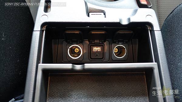 中央扶手裡面藏有兩個點菸器及一個USB跟AUX IN可聽音樂使用
