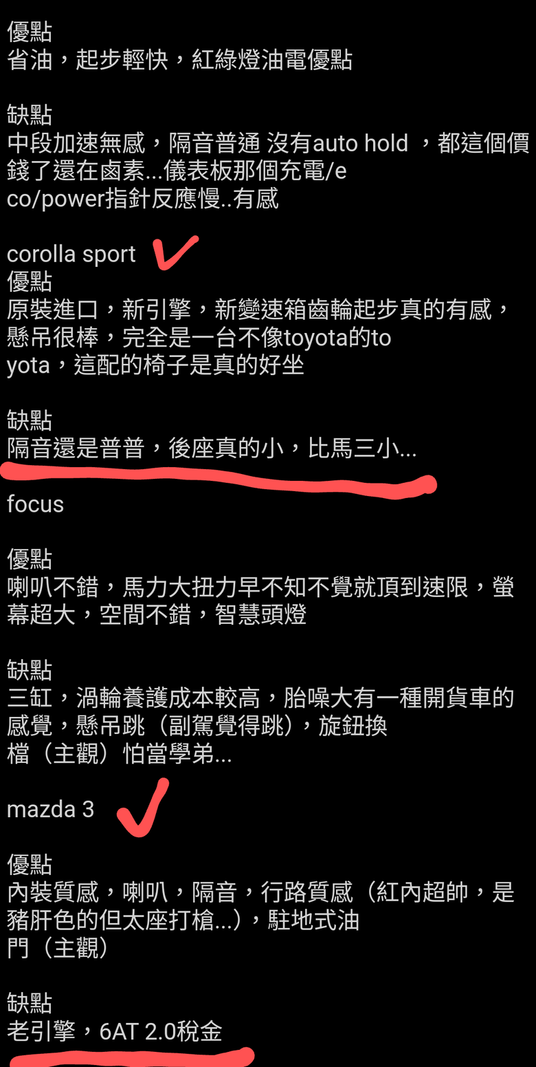 雖說他最後還是買了馬3,但我很好奇的是一樣是2.0引擎跟稅金,為何2.0稅金在Airus上就不是缺點,在馬3上就是缺點...?