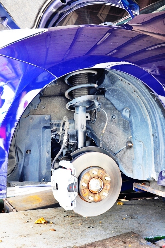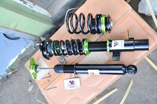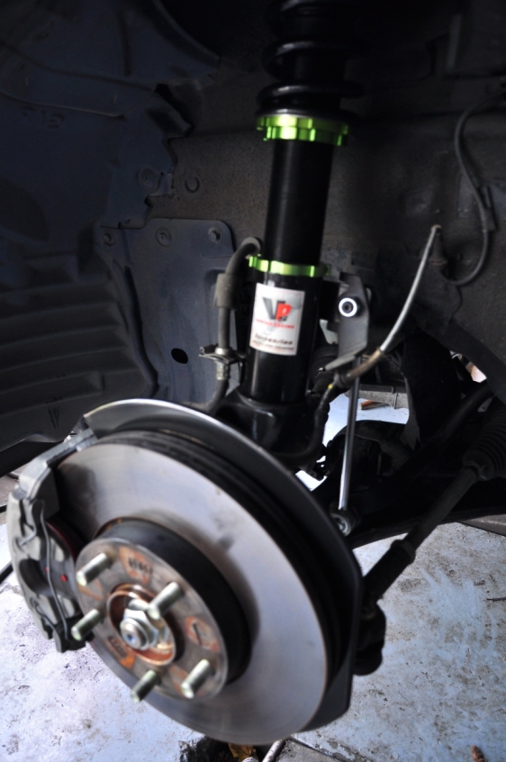 原廠16吋的框和YOKOHAMA ADVAN dB V551的胎被卸下(YOKOHAMA ADVAN dB V551的胎真的有安靜到,真捨不得)接下來原廠避震也準備卸下準備要換上去的避震新避震上去了17吋的框加Toyo C1S上身,完工試車ok藍泡泡全新姿態
